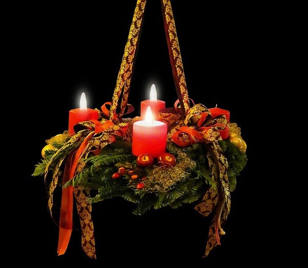 Die rosafarbene Kerze symbolisiert die Vorfreude auf die nahende Geburt Jesu, während die anderen Kerzen meist violett sind, der liturgischen Farbe für Besinnung und Buße.