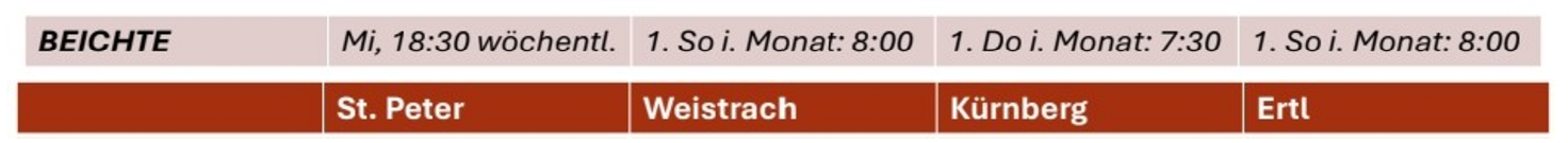 1. Samstag im Monat 19:00 Wortgottesfeier St. Peter/Au