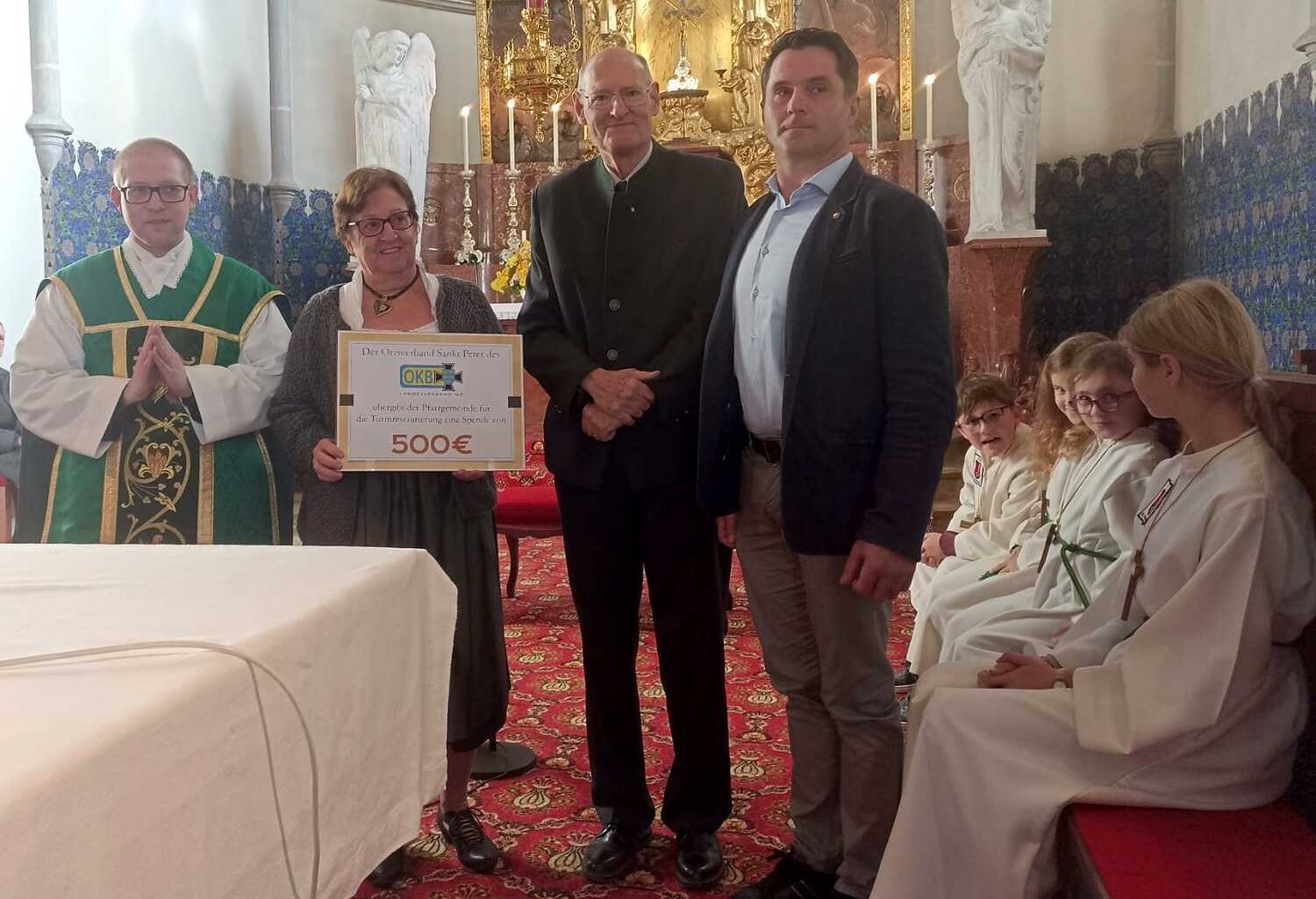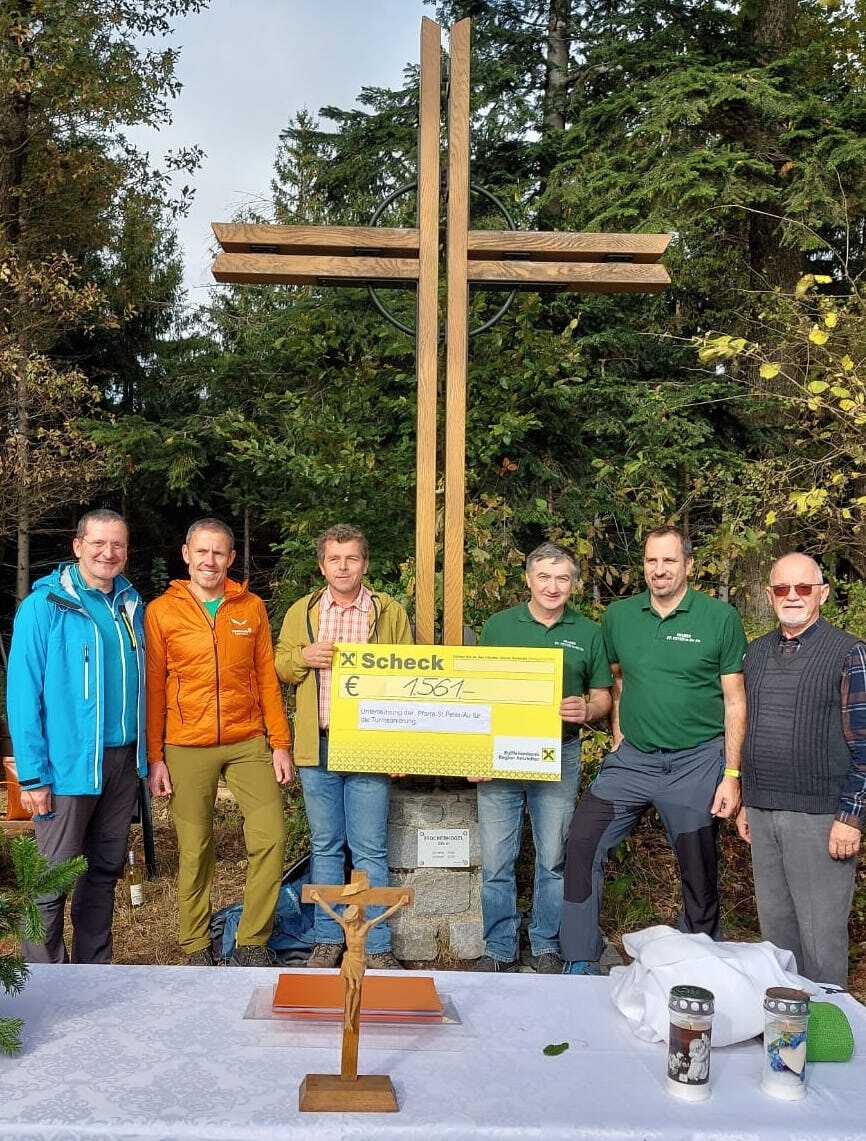 Dank der großzügigen Spenden konnte sich der Pfarrgemeinderat über einen Beitrag von € 2.055,– freuen, welcher zur Gänze der Turmrenovierung zu Gute kommt.