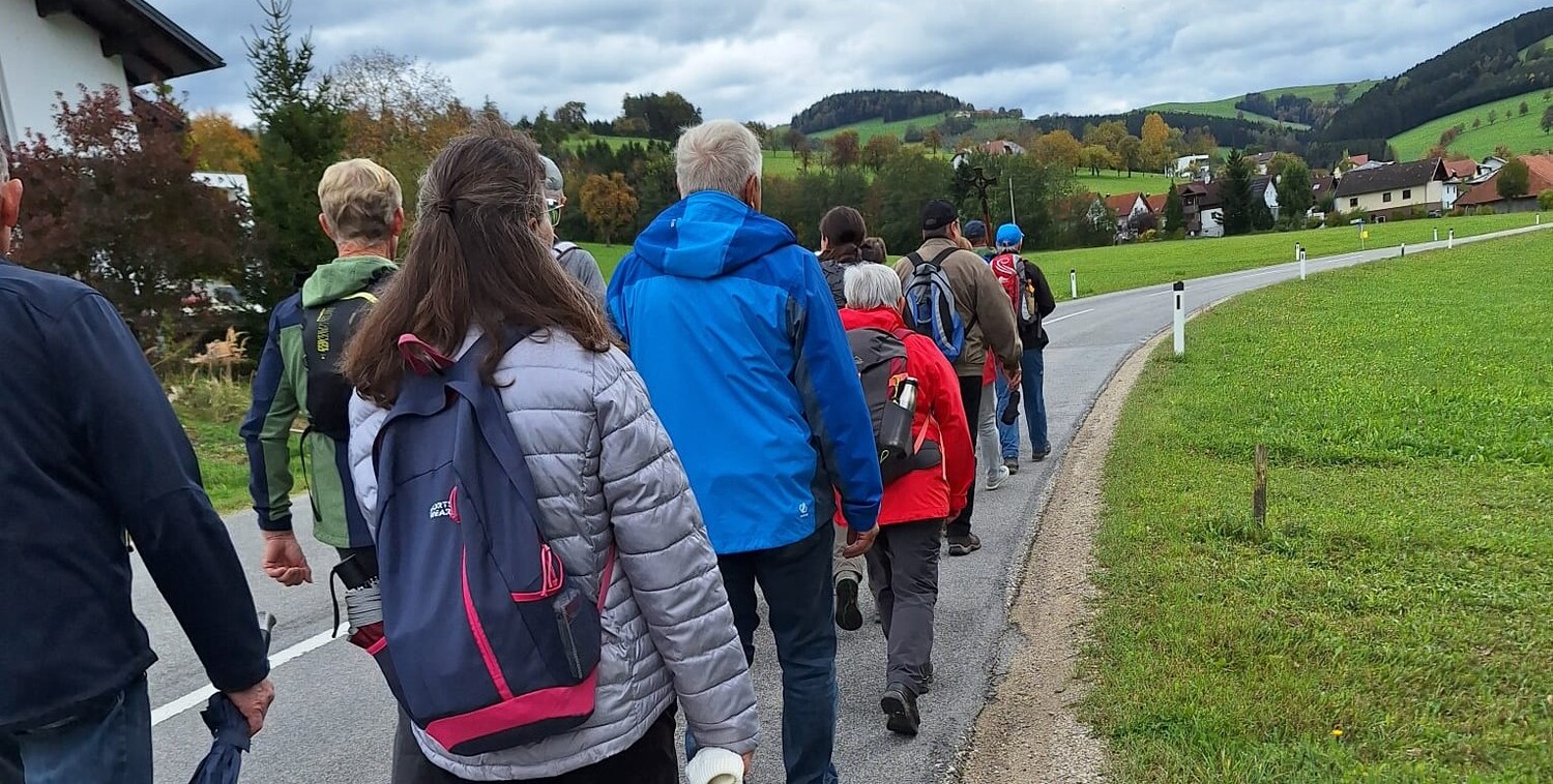 Ausgerüstet mit fröhlicher Zuversicht und geschmücktem Pilgerstab war Anfang Oktober eine Gruppe von sieben Personen aus St. Peter und Umgebung vier Tage lang wieder unterwegs auf traditionellen Wallfahrtswegen von St. Peter nach Mariazell. Die einzelnen Bitten des VATER UNSER wurden betrachtet, meditiert und über ihre Bedeutung für das konkrete alltägliche Leben nachgedacht. Bei wunderbarem Herbstwetter erlebten die Wallfahrer:nnen neben dem „Beten mit den Füßen“ auch beeindruckende Begegnungen mit Menschen und der Natur. Dankbar erreichten sie ihr Ziel und kehrten gestärkt und ermutigt in ihren Alltag zurück.