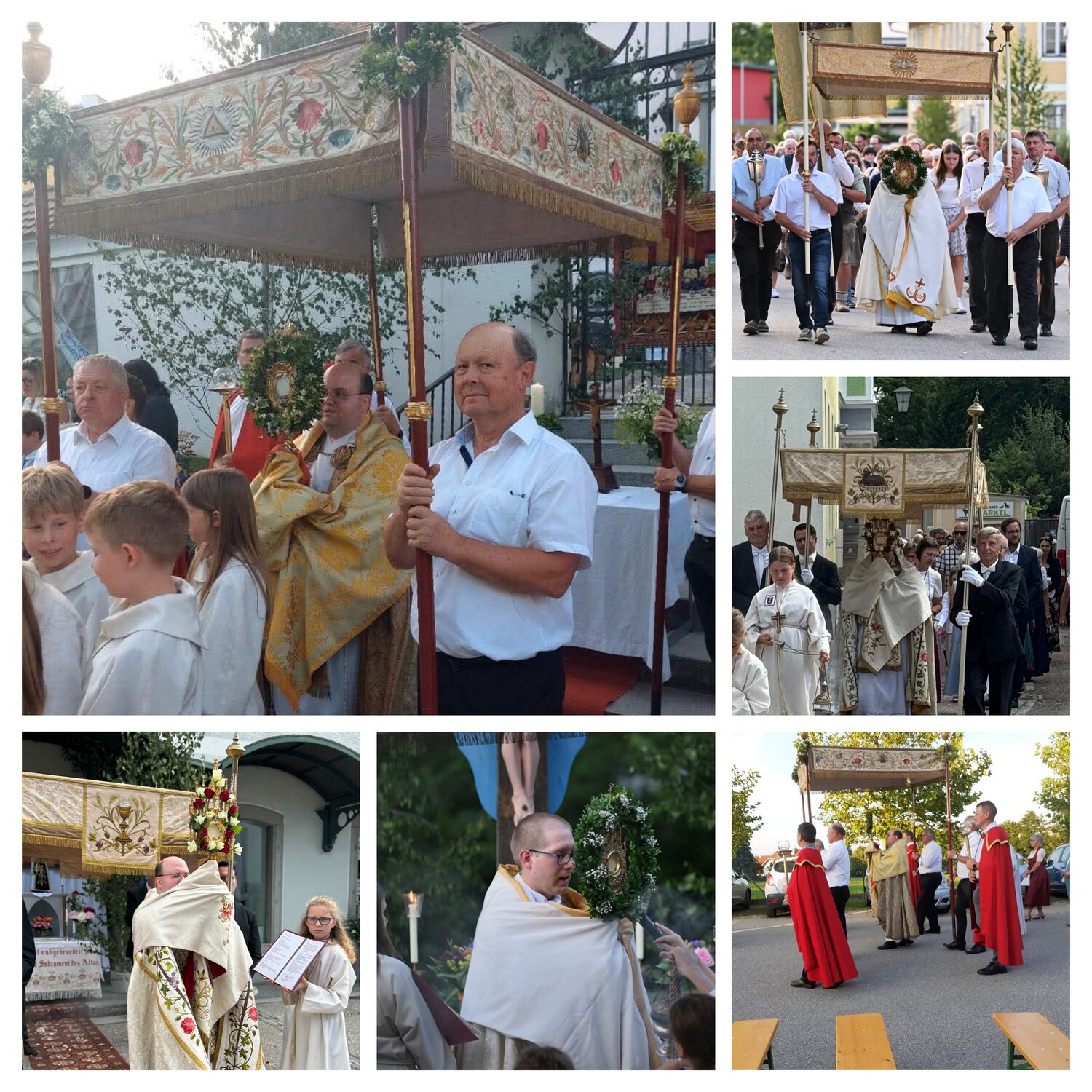 Zum Fronleichnamsfest ist es nicht möglich, in allen vier Pfarren des Pfarrverbandes an einem Tag überall eine Prozession zu haben. Deshalb fand der Fronleichnamsgottesdienst und die Prozession heuer in Weistrach und Ertl schon am Vortag, Mittwoch Abend statt. Die Gemeinschaft im Pfarrverband rückt mit dieser Regelung wieder ein Stück näher zusammen.