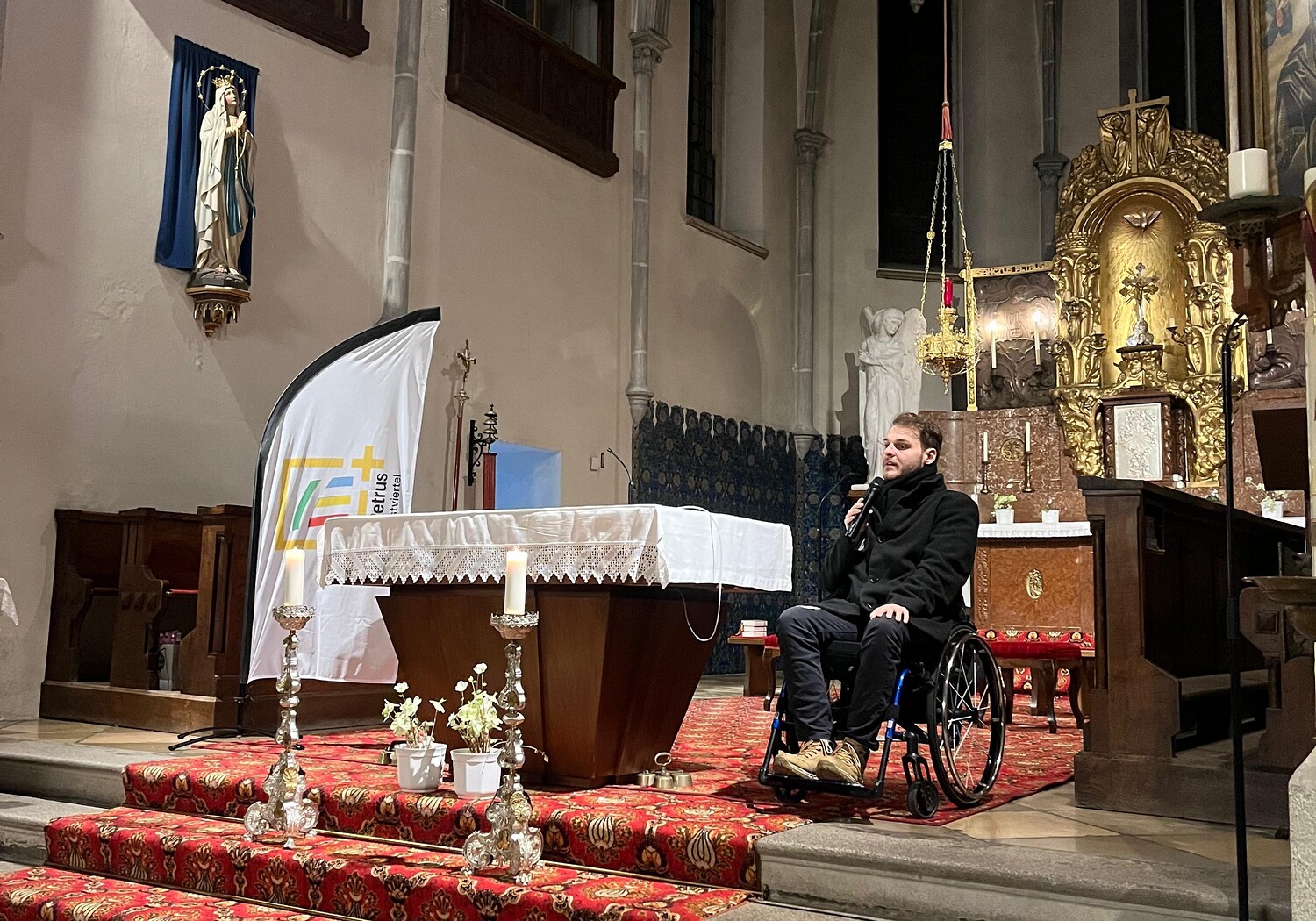 Luca (25 Jahre) startete nach der Matura sein Theologiestudium in Heiligenkreuz. Nur wenige Wochen später hatte er aus ungeklärter Ursache einen schweren Autounfall. Seine schweren Verletzungen führten zu einer Querschnittslähmung mit vielen Monaten Krankenhaus- und Reha-Aufenthalten.