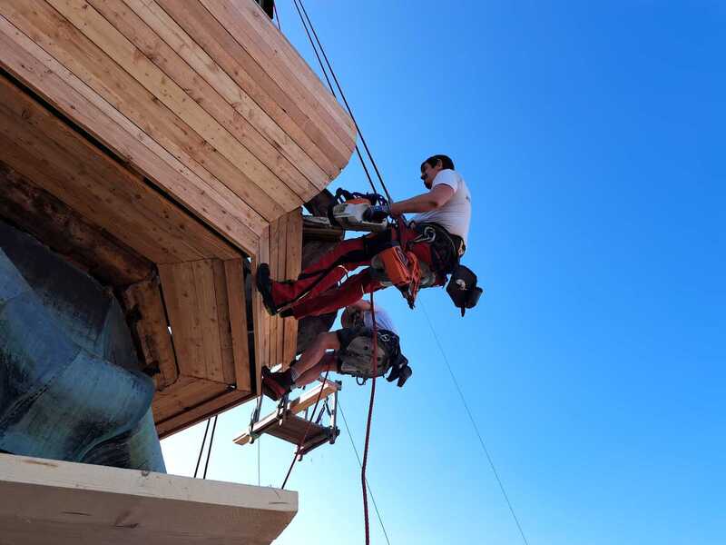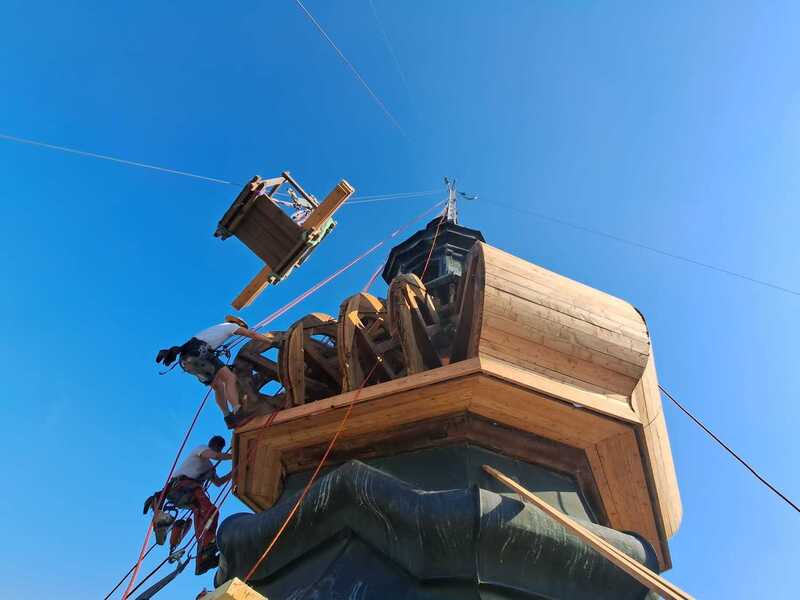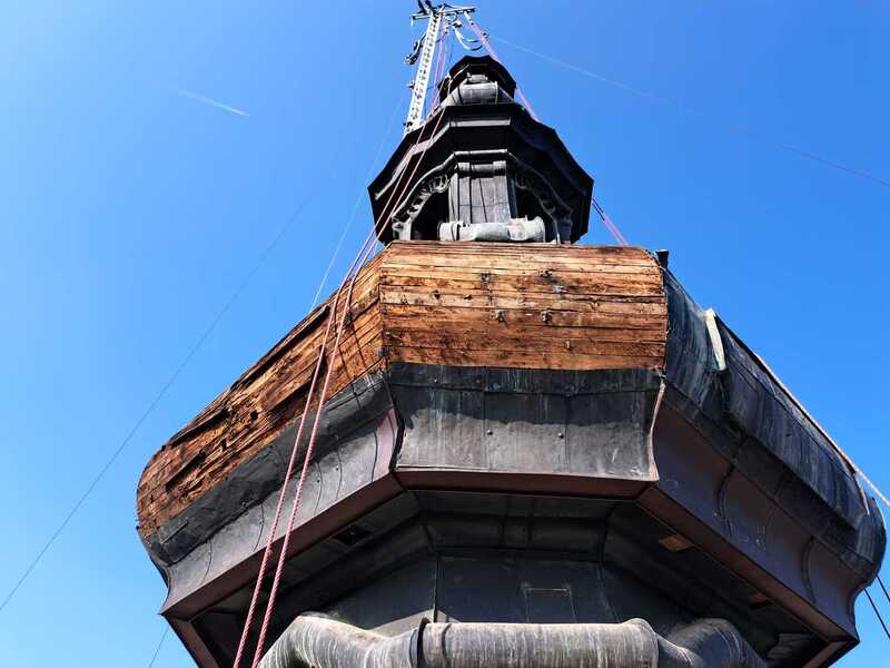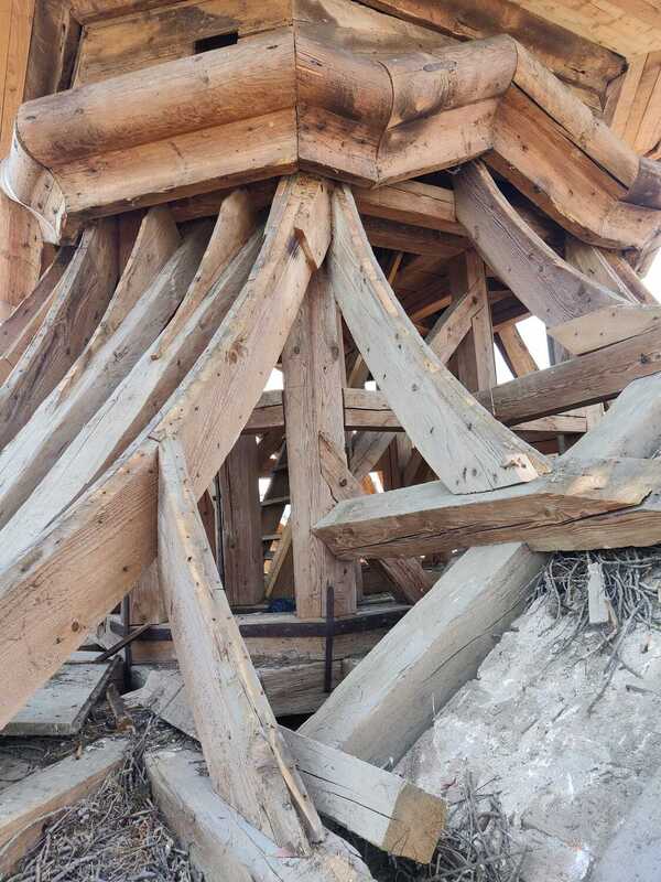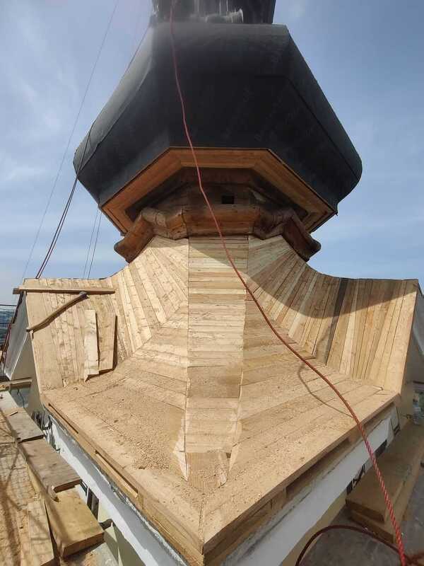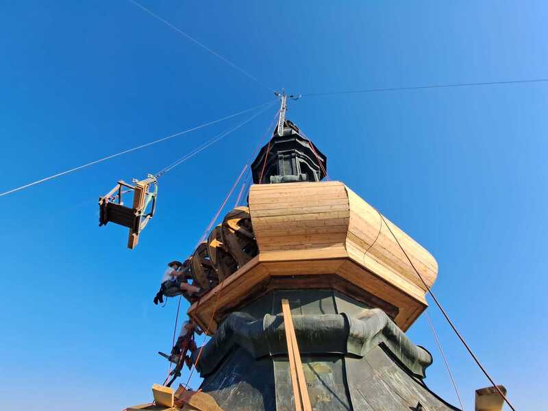 Hier die Neuverschalung der Zwiebel mit Holz