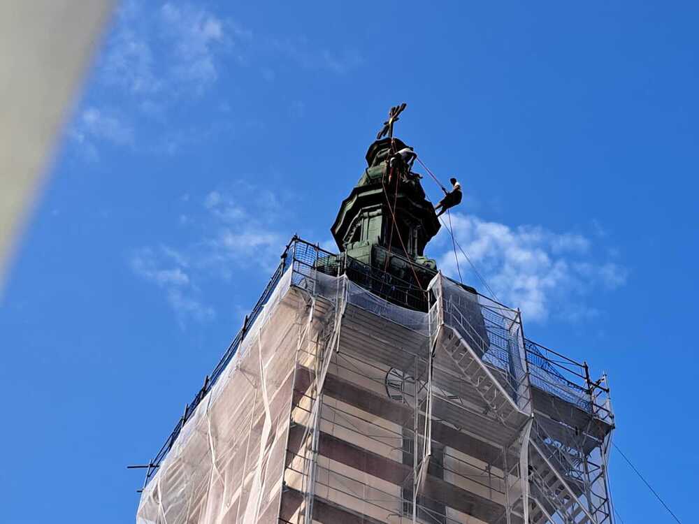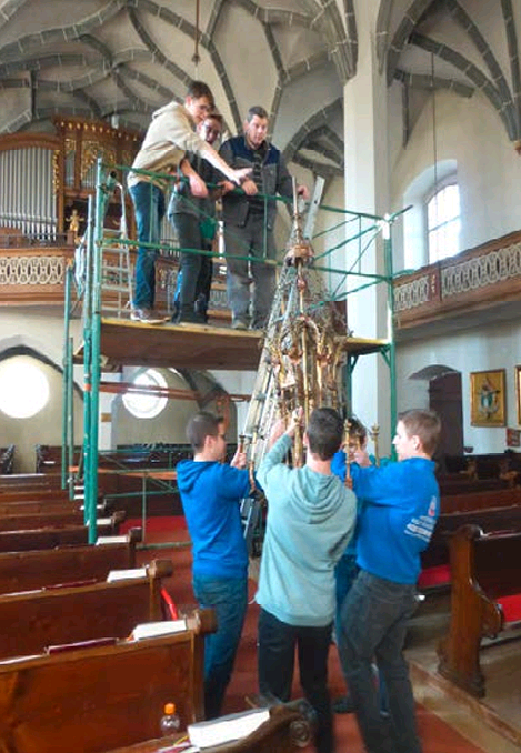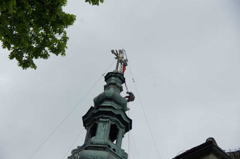 Zum Abschluss wird heuer das Kreuz feierlich wieder auf den Kirchturm gehoben. Ein Termin dafür steht noch nicht fest.