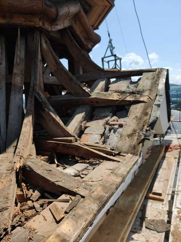 Bei diesen Arbeiten konnten unsere freiwilligen Helfer, die Zimmerleute und Dachdecker tatkräftig unterstützen. – Danke allen, die dabei waren!