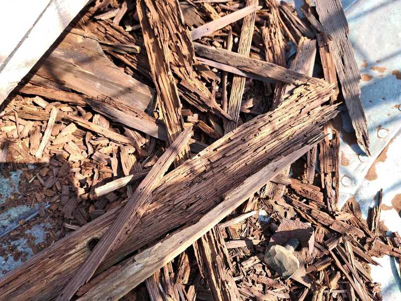Die morschen Teile des Holzes und Verschmutzungen werden entfernt