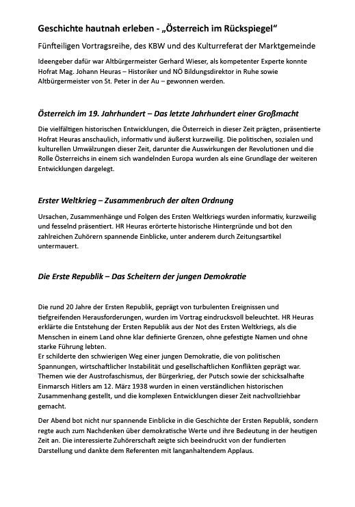 Bericht zur 1. Veranstaltung von der Gemeindehomepage St. Peter/Au