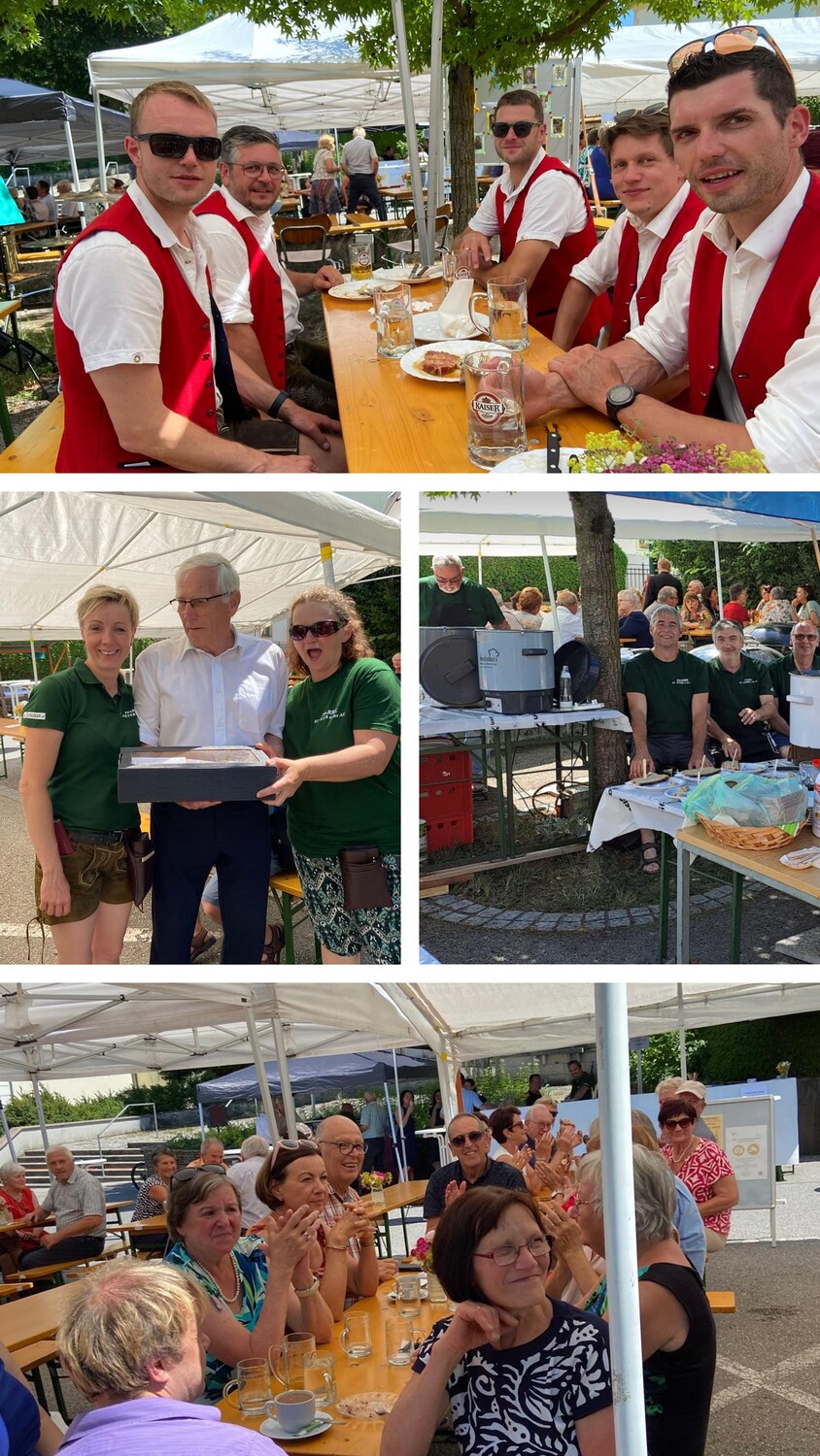 Nach dem Festgottesdienst ging es dann zum Pfarrhof, wo das Team der Pfarre bereits ganz großartig das Pfarrfest vorbereitet hatte. Die Stockerkogl-Tanzlmusi sorgte für die musikalische Untermalung und gute Stimmung. Unser Pfarrpatron Petrus, der angeblich ja nach dem Volksmund auch für das Wetter zuständig ist, stellte sich mit ganz viel Sonnenschein zum Fest ein. Zum Glück gab es kühle Getränke und Eis, herrliche Speisen, Mehlspeisen und noch vieles anderes für Leib und Seele.