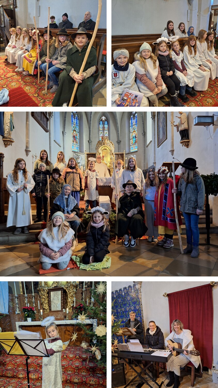 Wie schon seit Jahren am Heiligen Abend Tradition, haben sich auch heuer die Ministrantinnen und Ministranten wieder eine stimmungsvolle Gestaltung der Kindermette überlegt. Susanne Fehringer konnte mit den Kindern die Bedeutung der einzelnen Krippenfiguren erarbeiten und in der Adventzeit proben. Bereits eine halbe Stunde vor der Wortgottesfeier zauberten viele Ministranten mit Weihnachtsliedern auf ihren abwechslungsreichen Instrumenten eine besondere Atmosphäre für die Ankommenden. Das gemeinsame Musizieren und Singen erfüllte die Kirche mit stimmungsvoller Andacht.