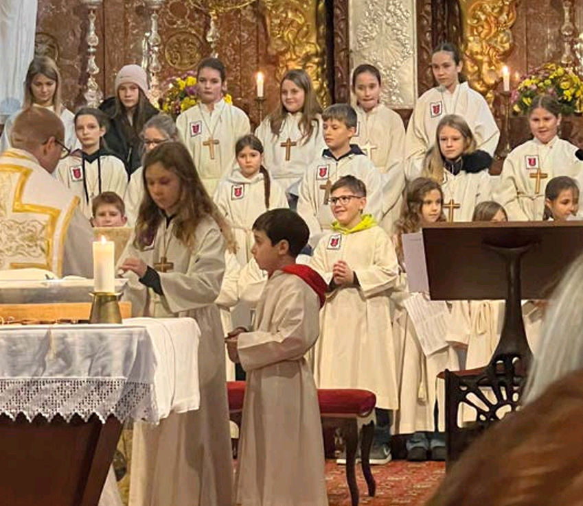 Am 26. 11. wurden 35 Firmlinge bei einer von den Ministrant:innen gestalteten Messe in unserer Pfarre begrüßt. Lisa Wieser schaffte es wieder, den Kindern stimmungsvolle Lieder näherzubringen und sie fürs Singen zu begeistern. Ministrant:innenbetreuerin Susanne Fehringer begleitete die Kinder durch den Gottesdienst: Insgesamt wurden heuer 11 neue Ministrant:innen aufgenommen. Wir freuen uns, dass uns Brandner Elina und Sonja, Franz Alexander, Frech Janina, Gröbl Linda, Heuras Emilia, Holzer Fabian, Reich-Schachermayer Lena, Schörghuber Victoria, Schwödiauer Antonia und Steindl Jonas bei den Gottesdiensten unterstützen und wünschen ihnen viel Freude bei ihrem zukünftigen Dienst am Altar. Alle Kinder, die schon jahrelange Erfahrung beim Ministrieren gesammelt haben, wurden zu Oberministrant:innen ernannt, die sich aktiv und mit besonderen Aufgaben in den Dienst der Pfarre stellen. Außerdem wurden auch 11 Kinder aus dem Ministrant:innendienst verabschiedet. Wir wünschen ihnen für ihre Zukunft alles Gute und sagen Dank!