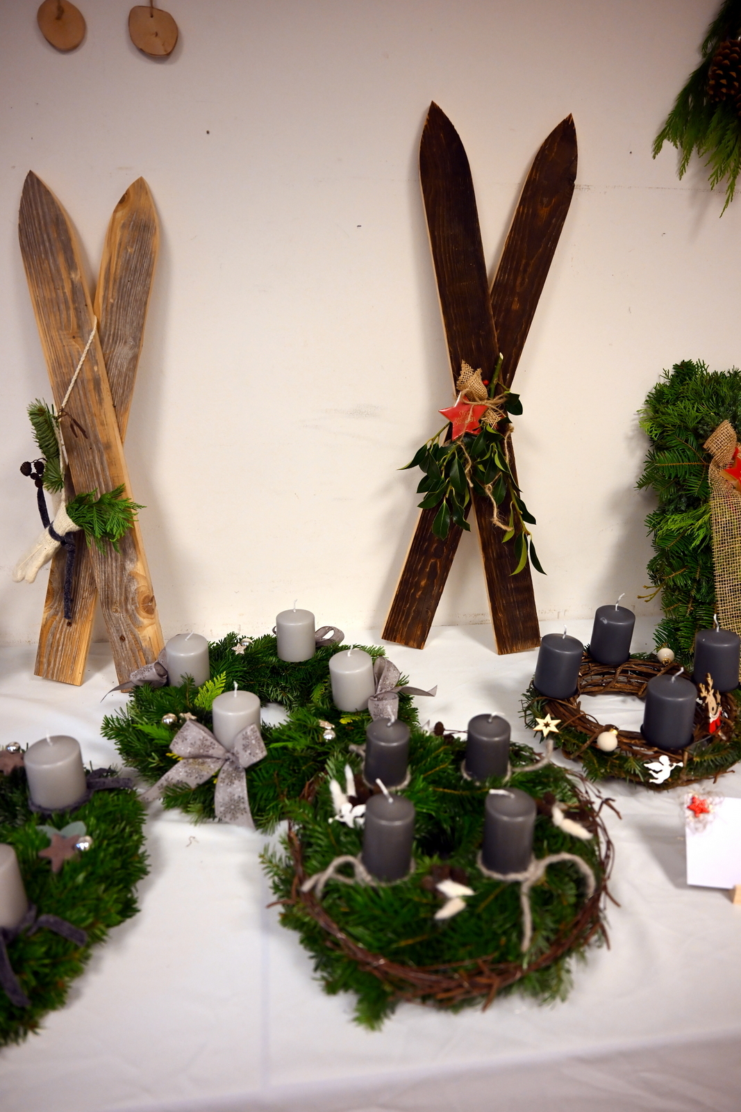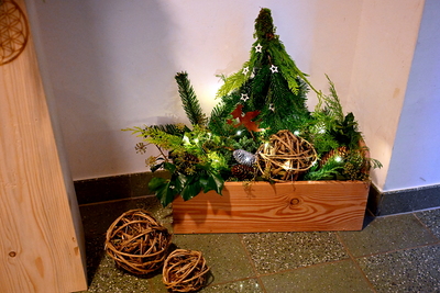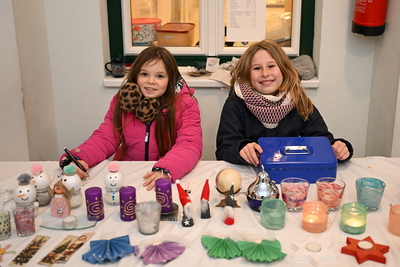 Am Samstag öffnete der Adventmarkt – schon sehnsüchtig erwartet – um 15 Uhr seine Pforten: Im Pfarrheim konnten handgebundene und individuell geschmückte Adventkränze, Gestecke, saisonale Dekorationen, 18 kg Kekse und Schokonüsse, Liköre und Gelees, Weihrauch und Räuchermischungen erworben werden. Wie jedes Jahr hatten auch die Minis wieder einen Stand, wo sie liebevoll zusammengestellte Kleinigkeiten wie selbst gebastelte Papier-Engel, Wichtel und Schneemänner sowie verzierte Teelicht-Gläser und viele kleine Mitbringsel anboten. Im Freien sorgte der Standlbetrieb mit warmen Schmankerln für ein gemütliches Beisammensein.