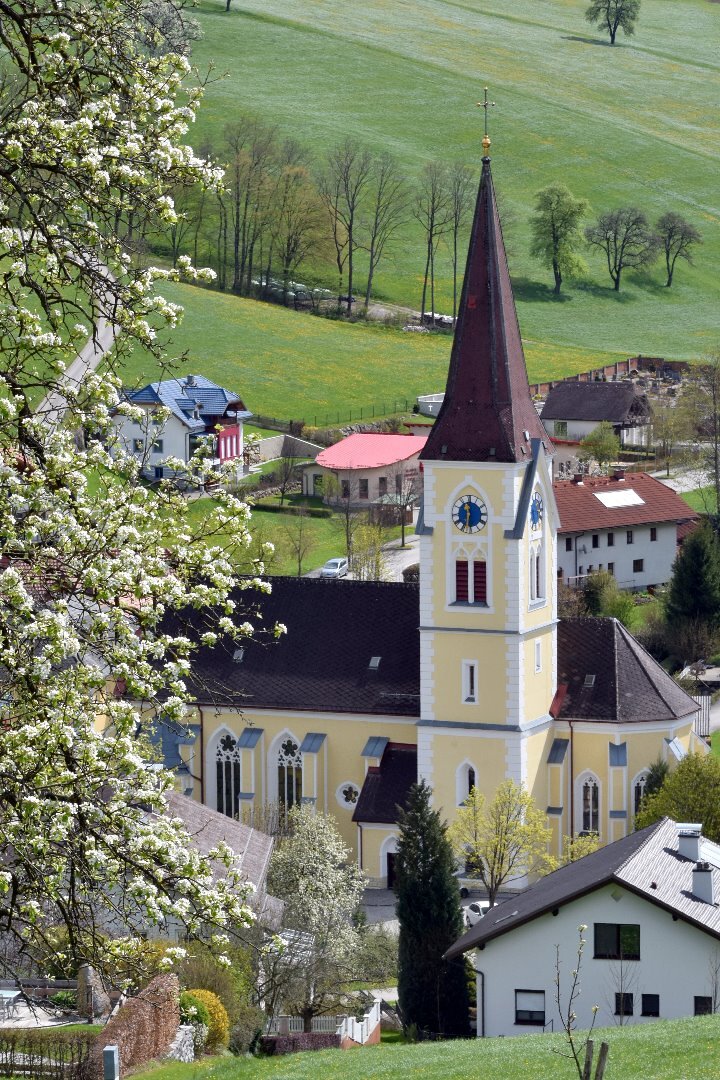 Von den ursprünglich aus 1909 stammenden 4 Glocken mit dem Geläut f, gis, b und h mussten 3 im 1. Weltkrieg abgeliefert werden. Die am 15.08.1925 neu angeschafften und eingeweihten 4 Glocken (1.800 kg) wurden am 10.02.1942 im 2. Weltkrieg wiederum abtransportiert und an die Reichsstelle für Metaller der Kreishandwerksschaft für den Krieg gespendet. Die 5. kleine Glocke (35cm) aus dem 17. Jahrhundert, welche als Spende vom Stift Seitenstetten gegeben wurde, verblieb jeweils in der Kirche, zersprang allerdings im Winter 1946/47.