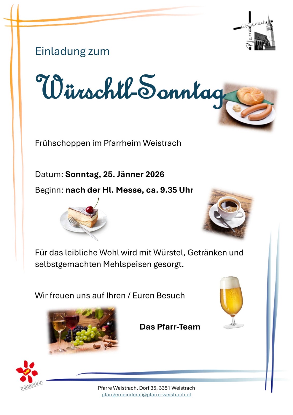 HL. MESSE, vorher ROSENKRANZ, anschl. PFARRKAFFEE („Würschtl-Sonntag“)
